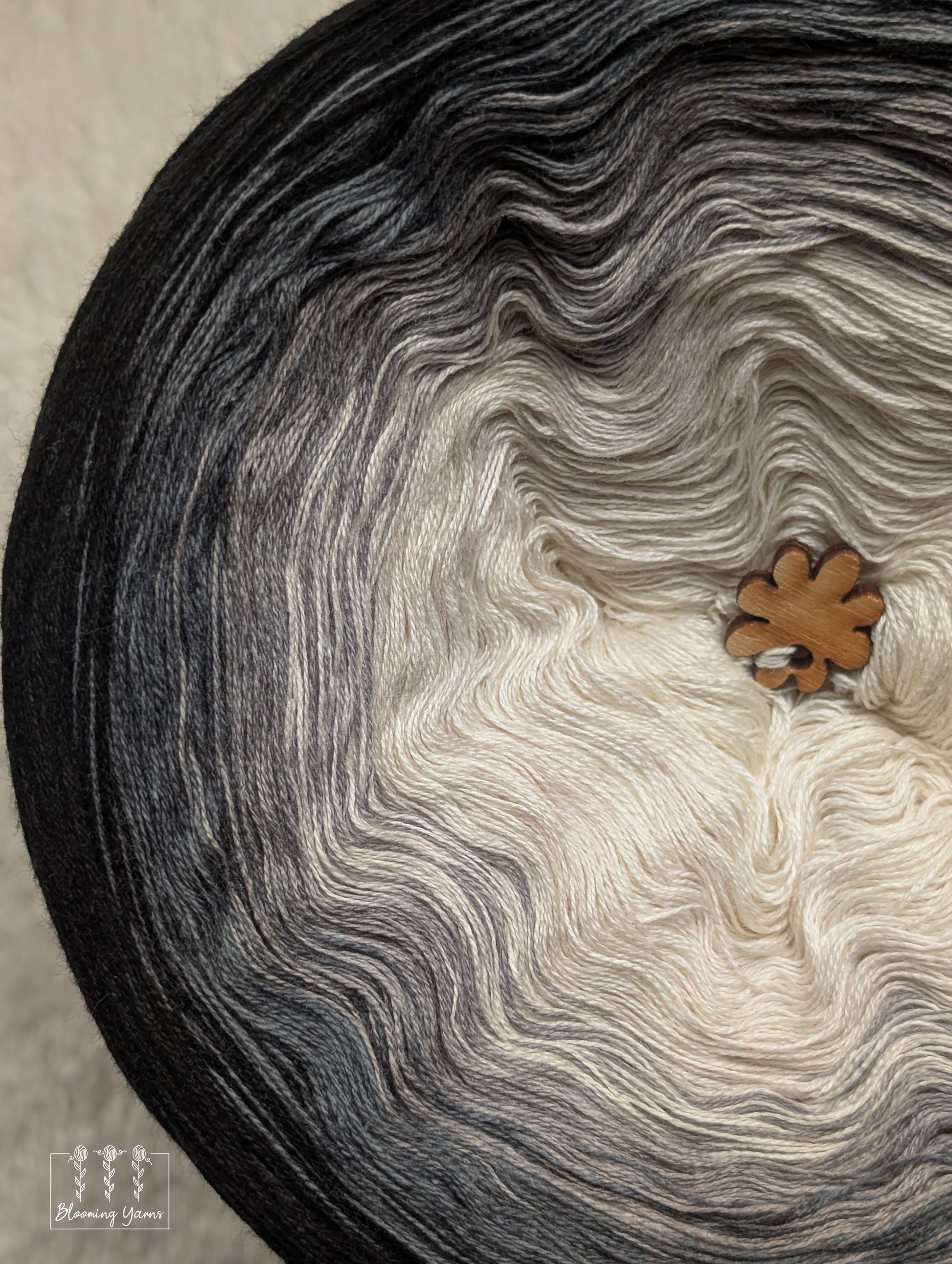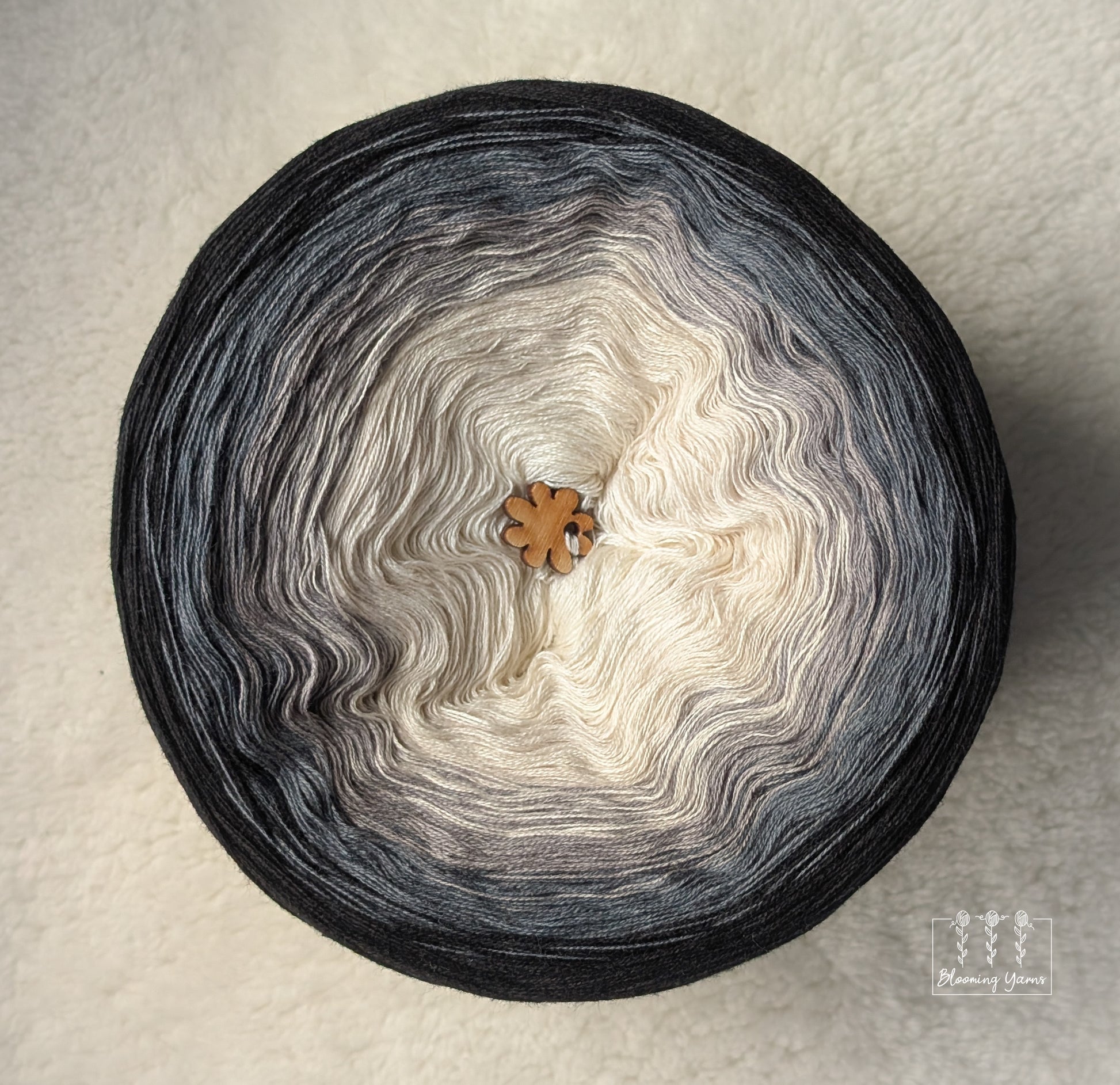 Gradient yarn cake made with 50%cotton/50%HQ acrylic untwisted threads.