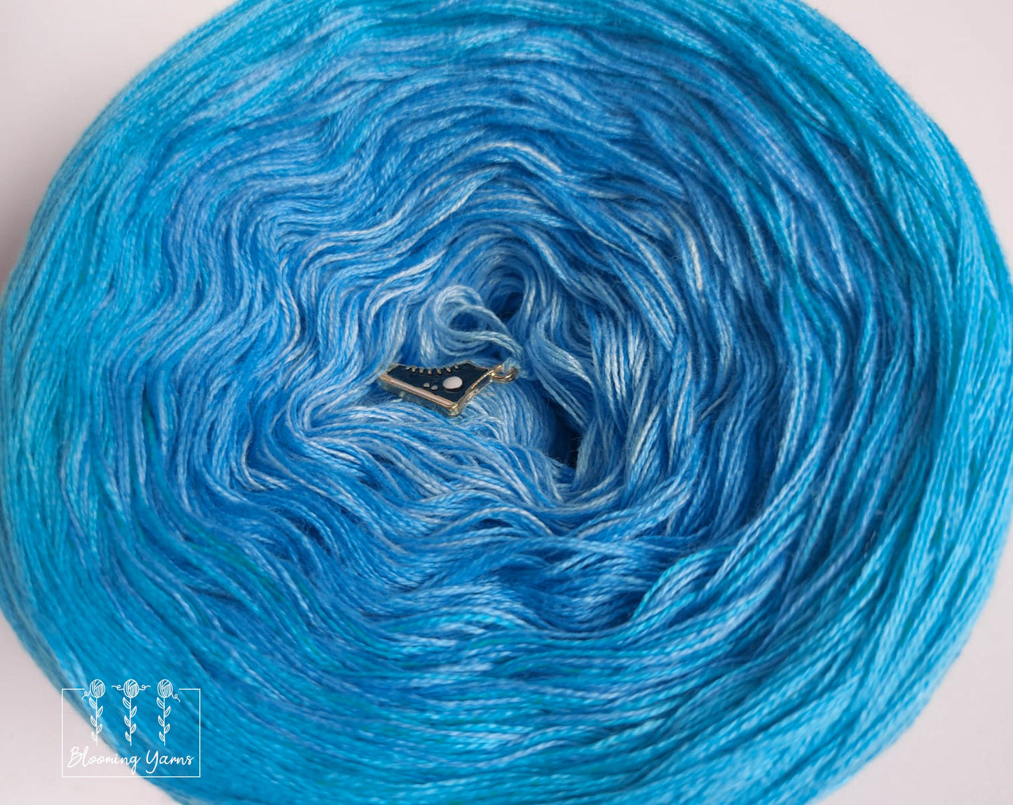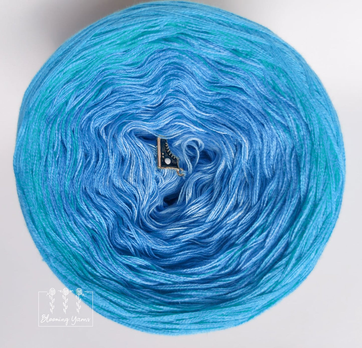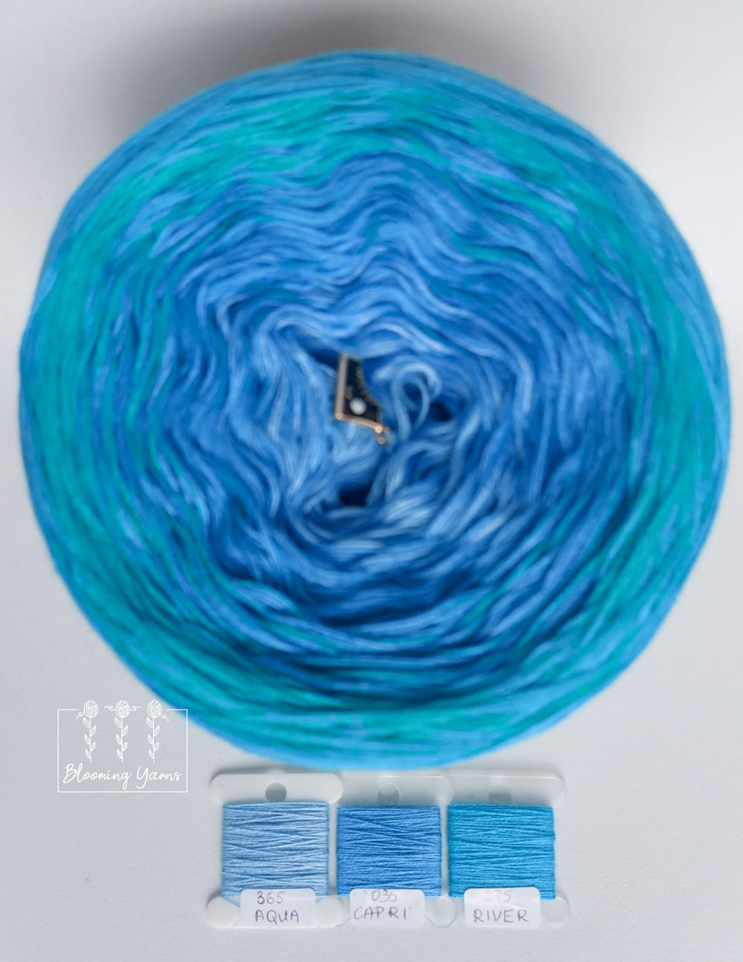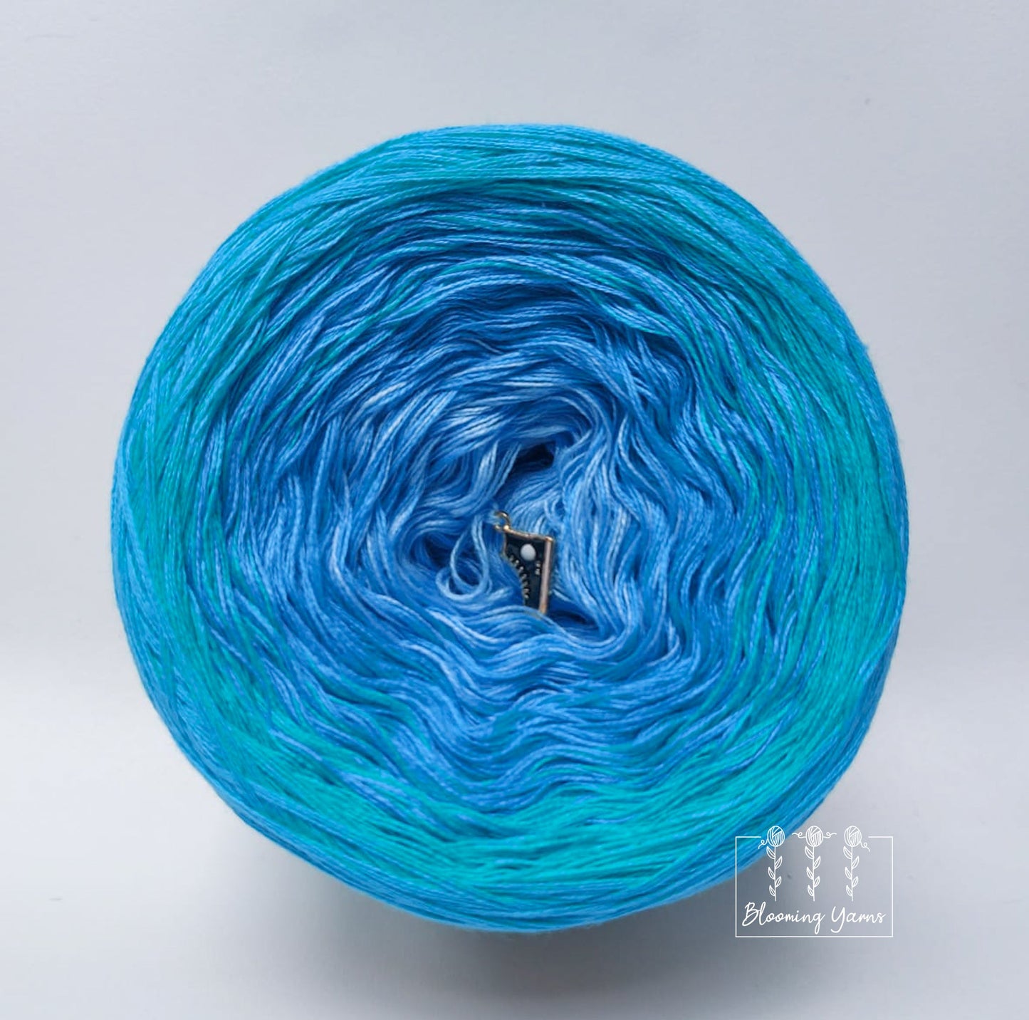 Gradient yarn cake made with 50%cotton/50%HQ acrylic untwisted threads.