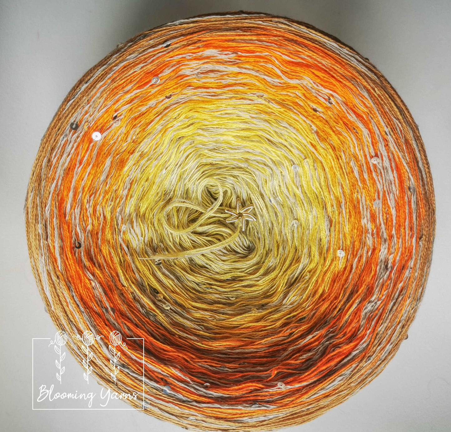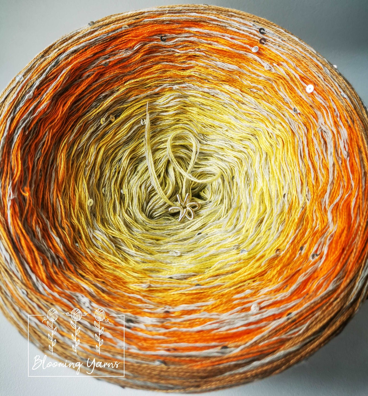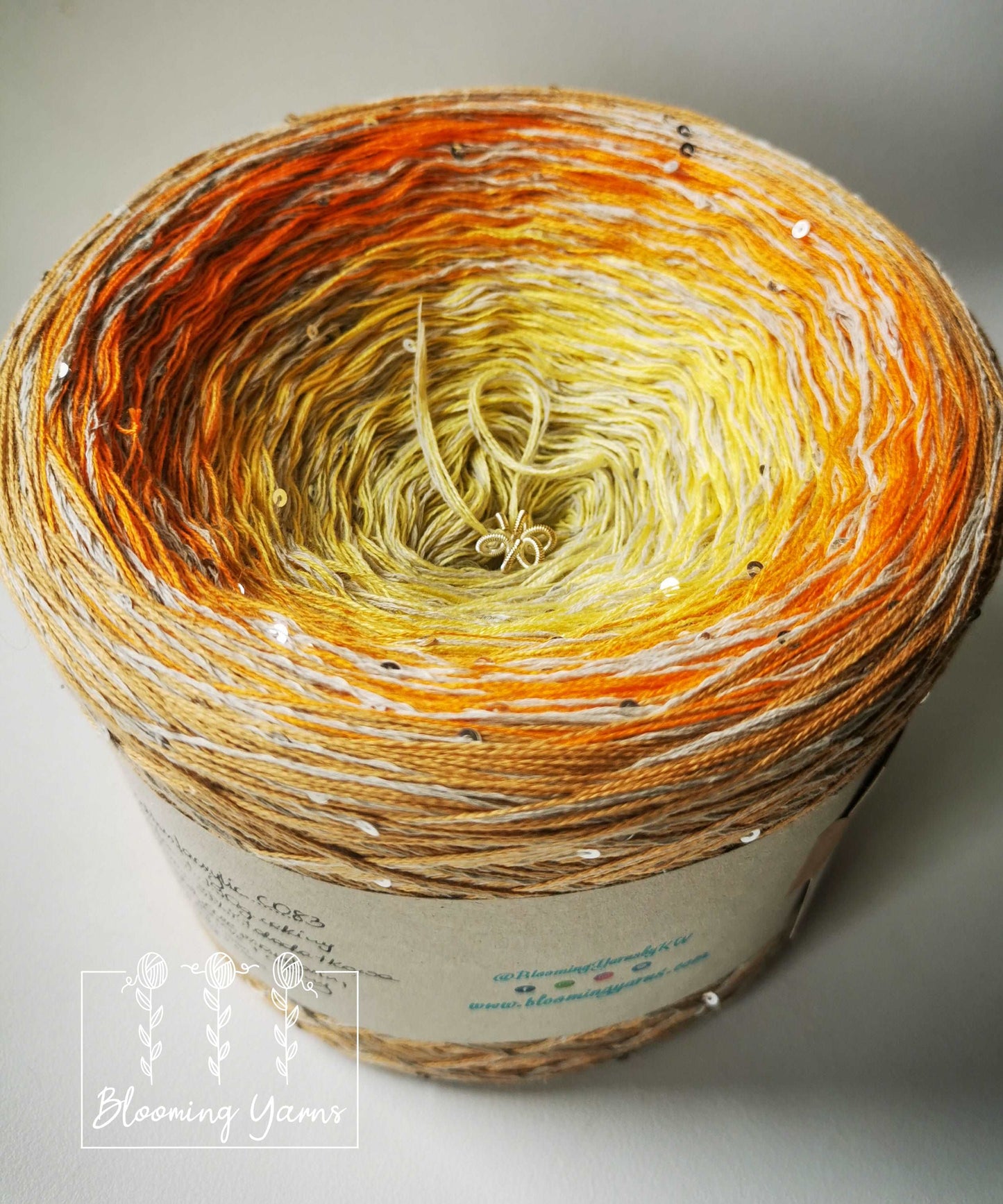 Gradient yarn cake made with 50%cotton/50%HQ acrylic untwisted threads