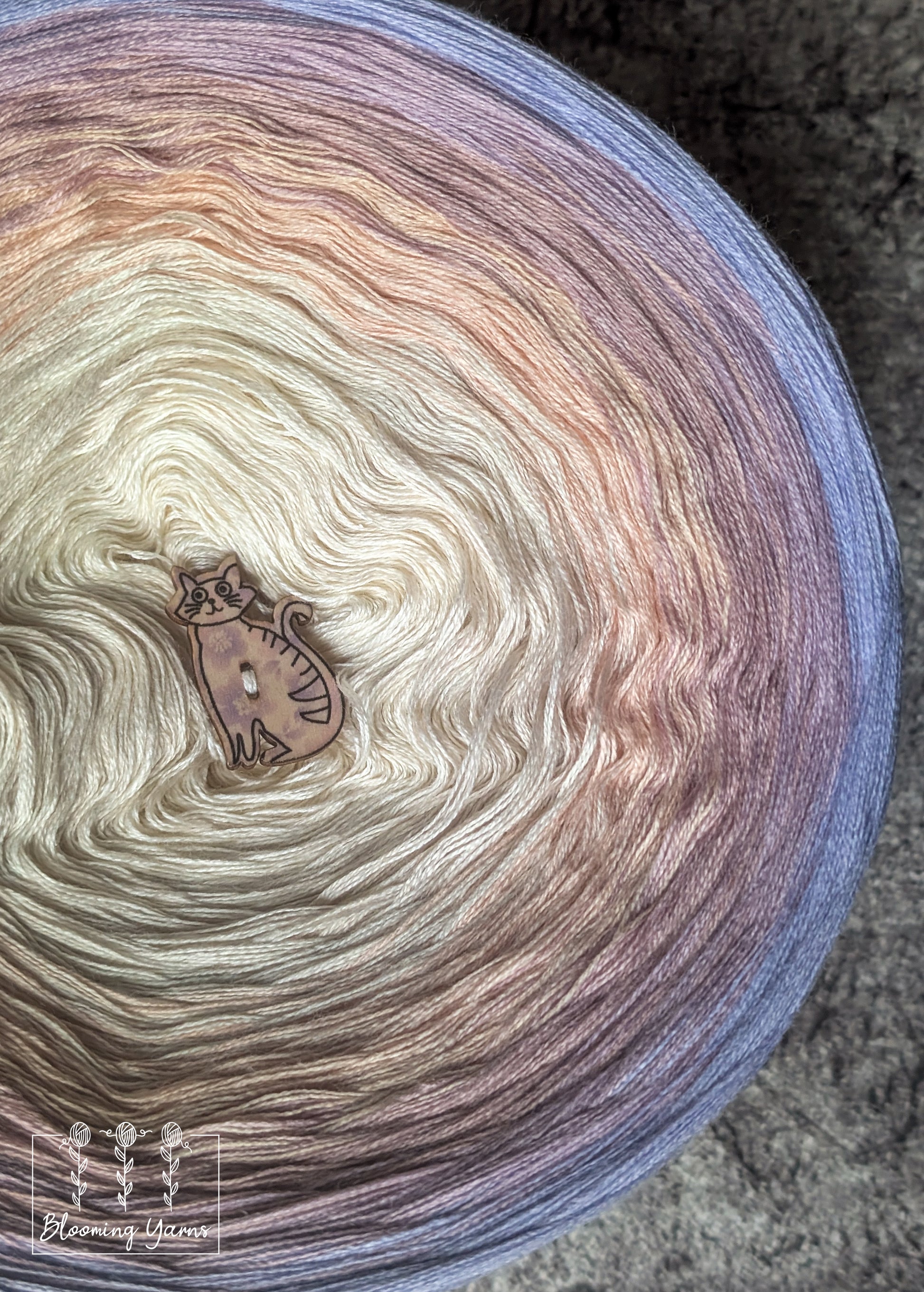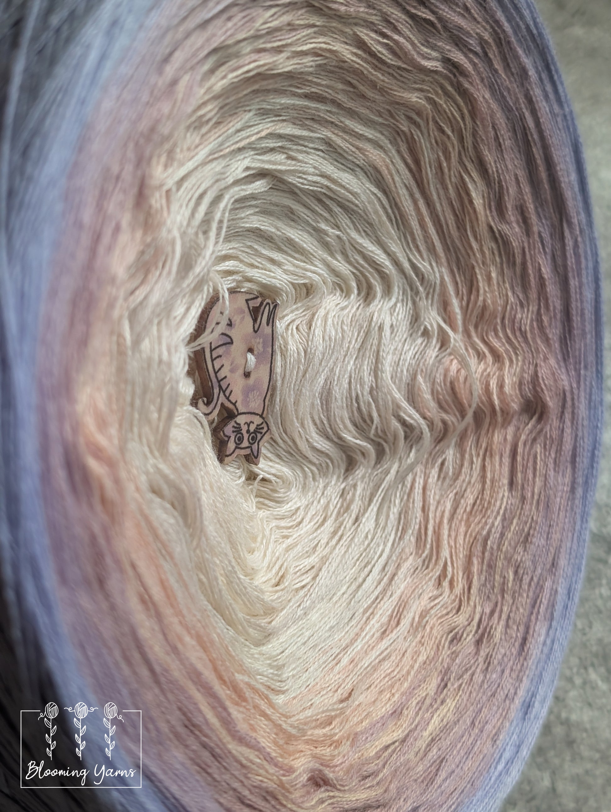Gradient yarn cake made with 50%cotton/50%HQ acrylic untwisted threads.