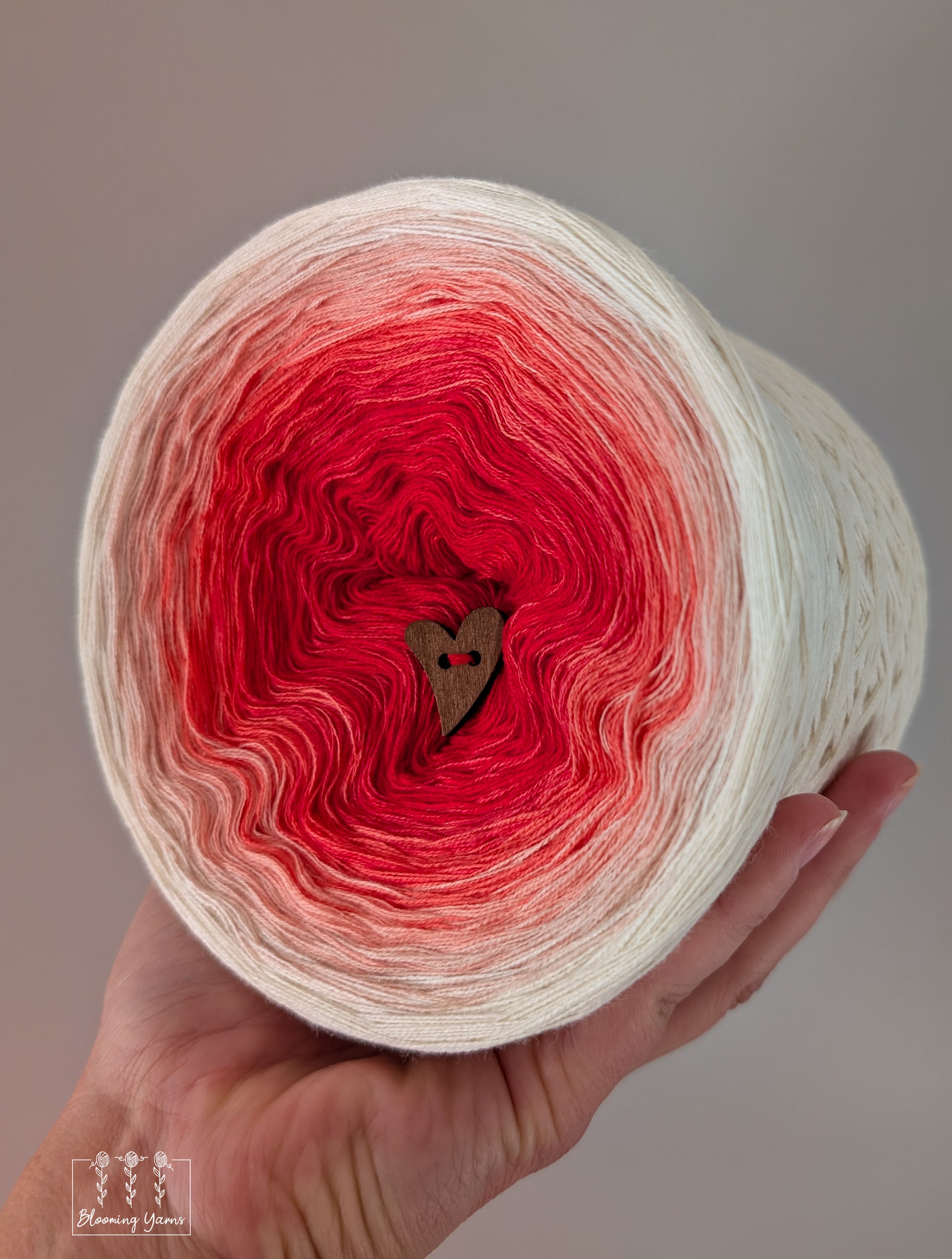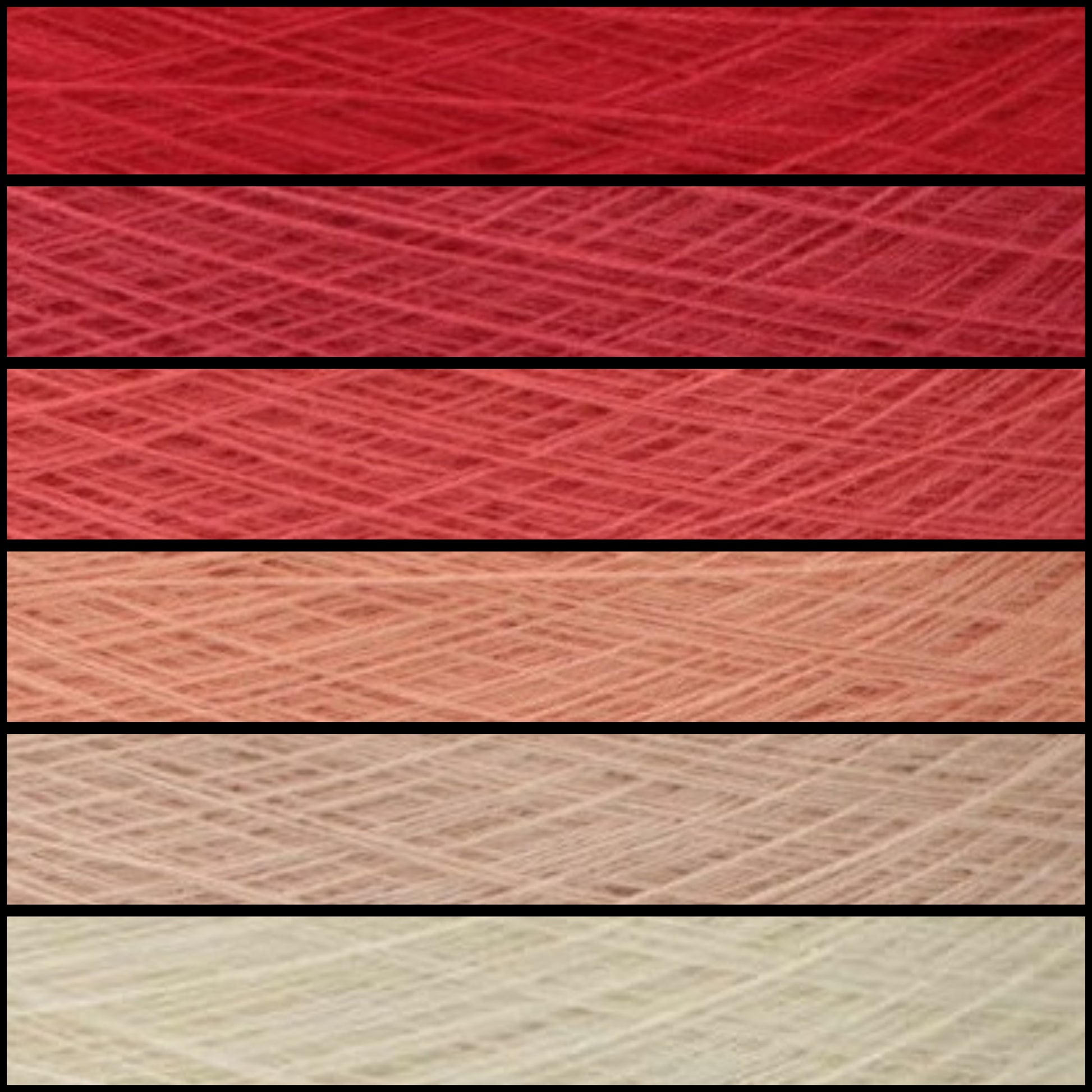 Gradient yarn cake made with 50%cotton/50%HQ acrylic untwisted threads.