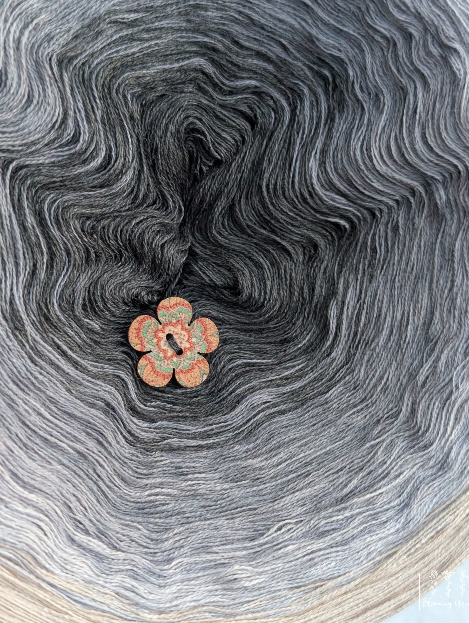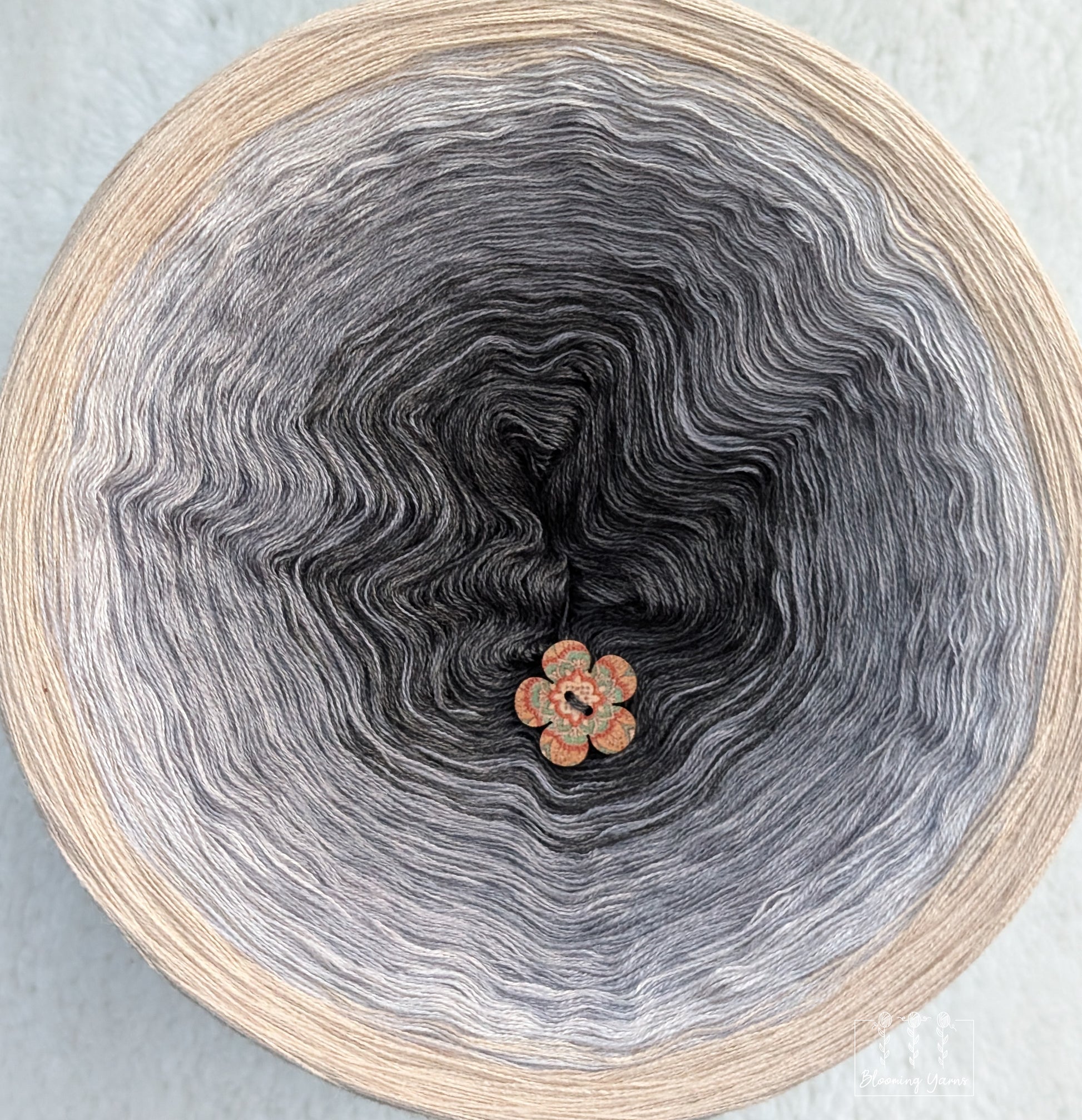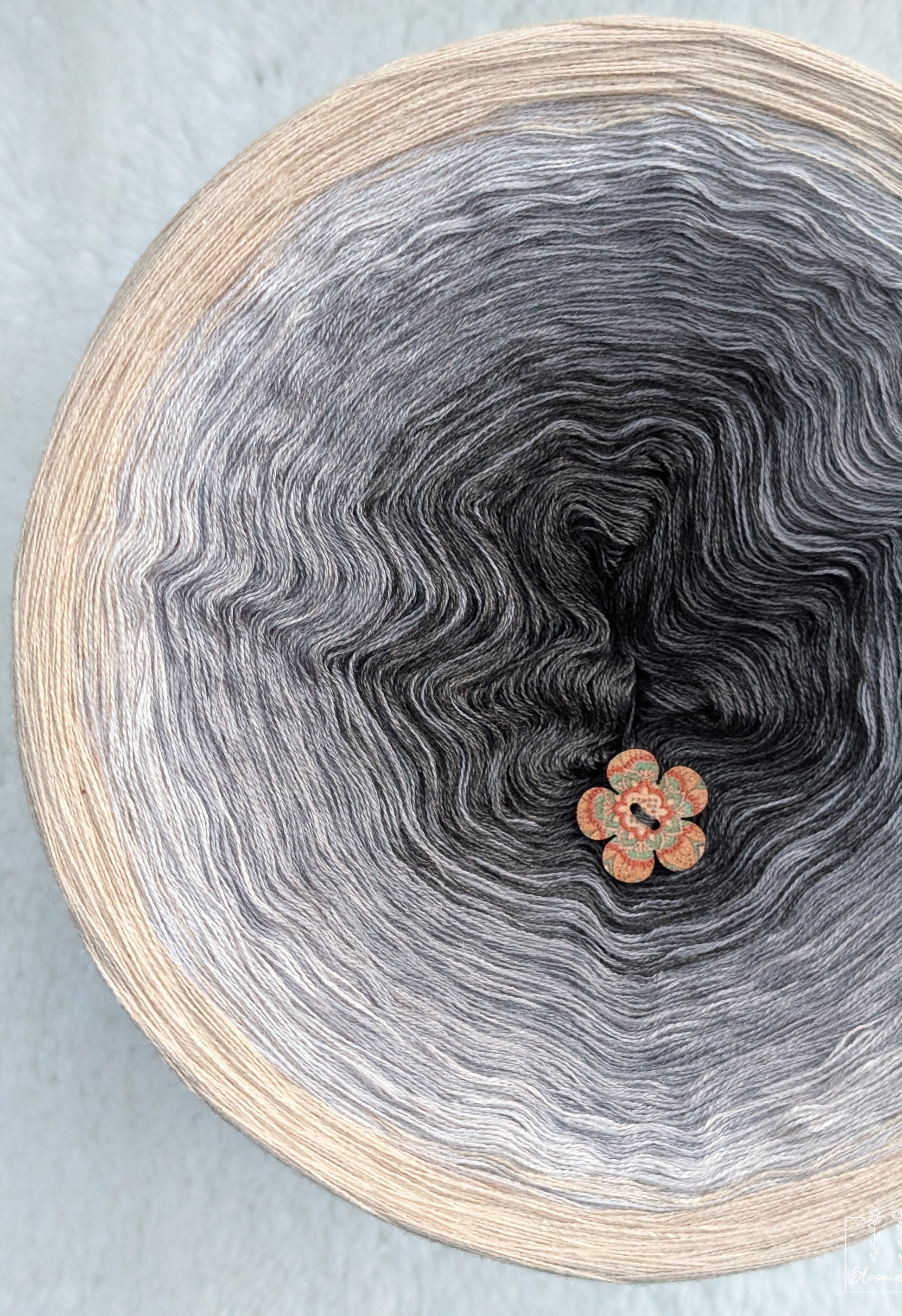 Gradient yarn cake made with 50%cotton/50%HQ acrylic untwisted threads.