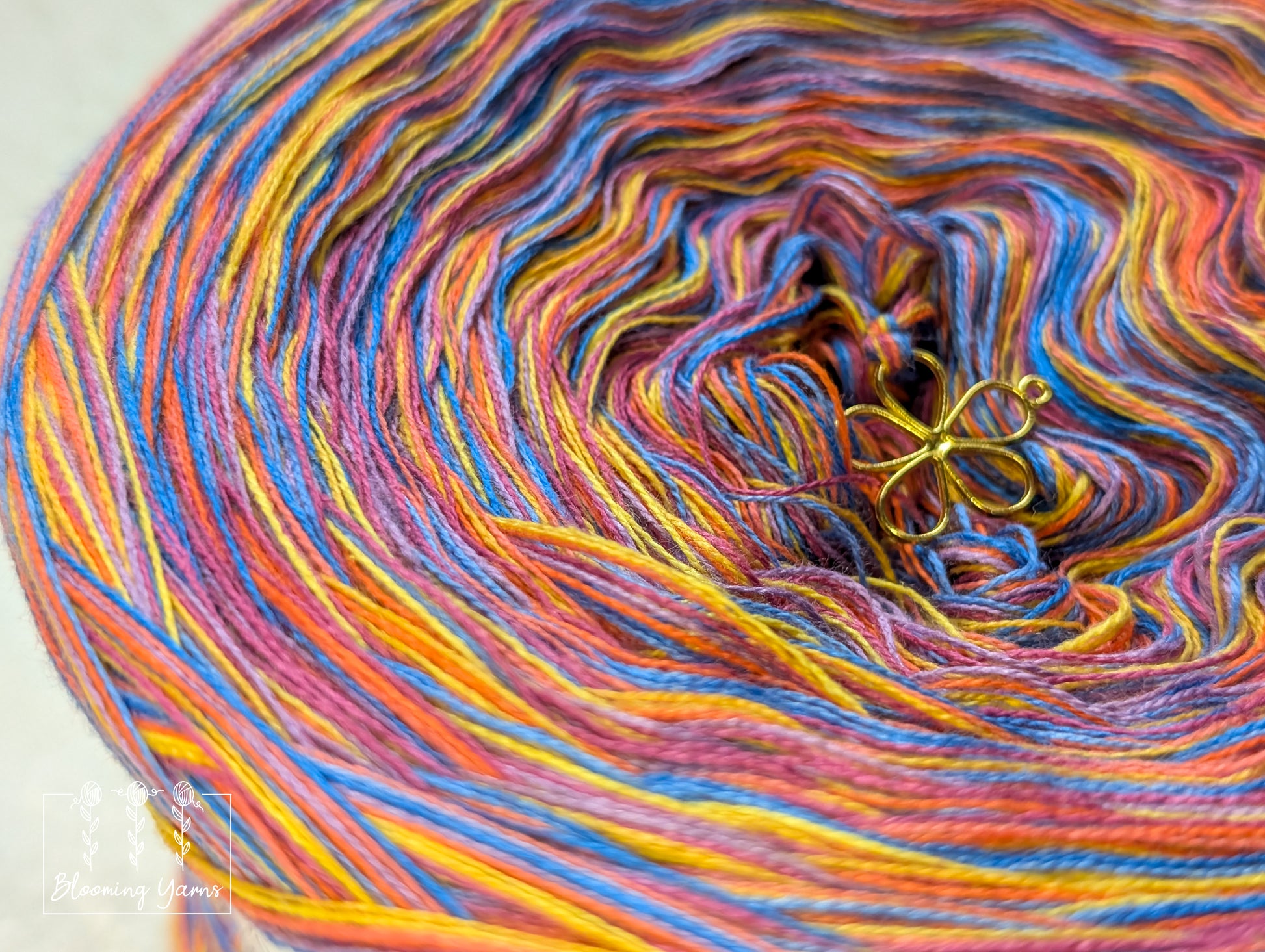 Melange yarn cake made with 50%cotton/50%HQ acrylic untwisted threads.