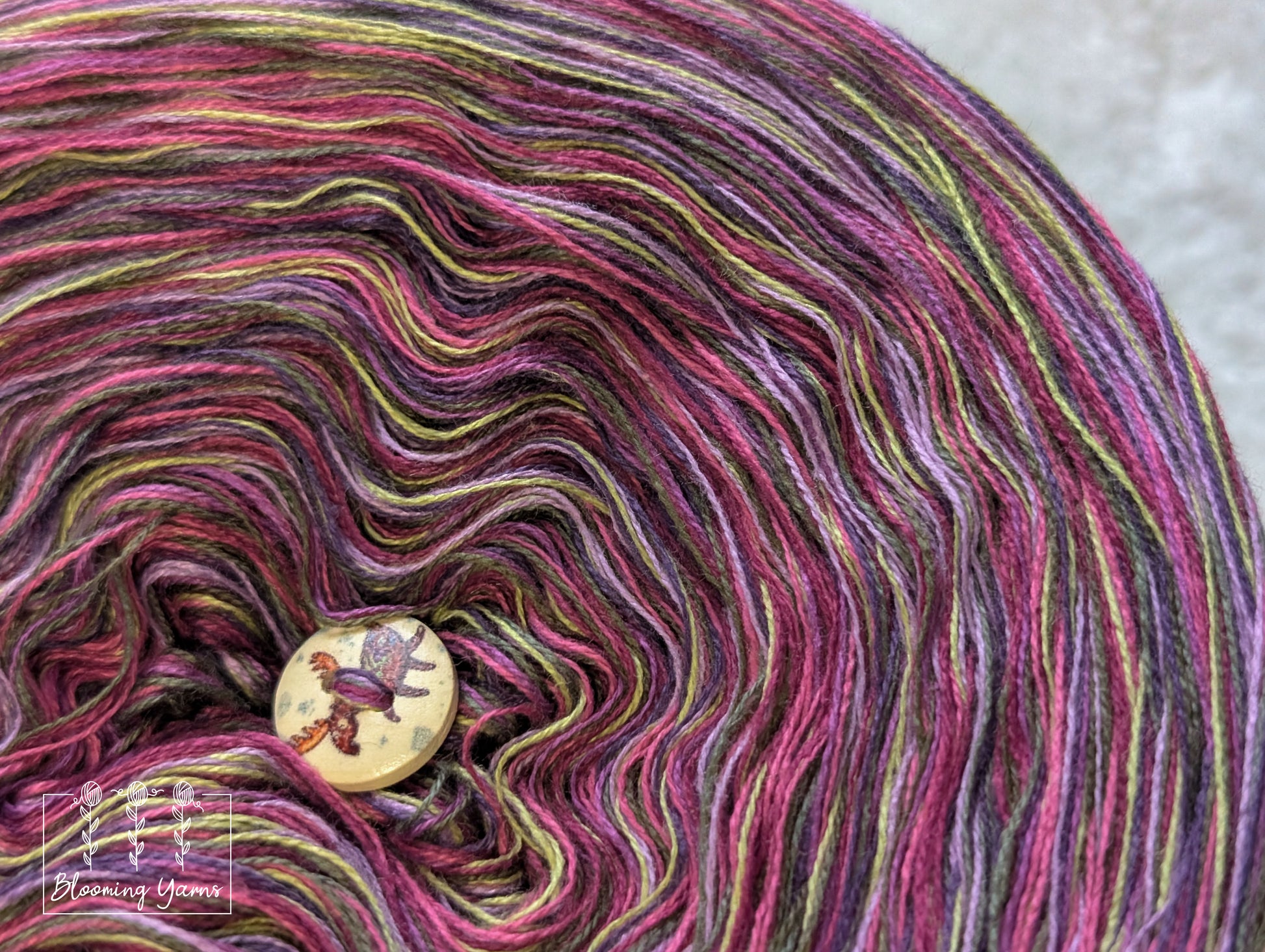 Melange yarn cake made with 50%cotton/50%HQ acrylic untwisted threads.