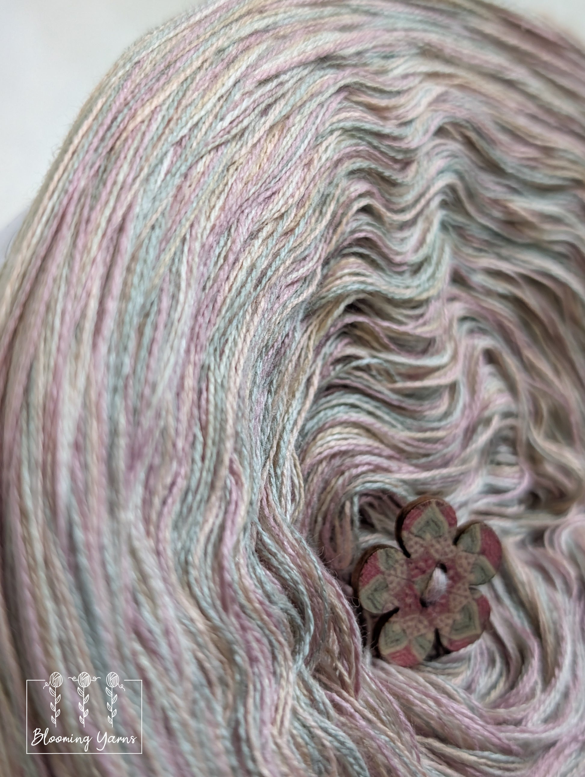 Melange yarn cake made with 50%cotton/50%HQ acrylic untwisted threads.