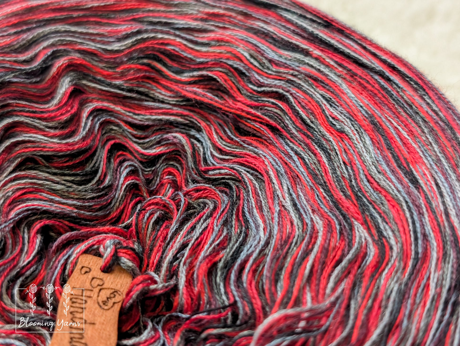 Melange yarn cake made with 50%cotton/50%HQ acrylic untwisted threads.